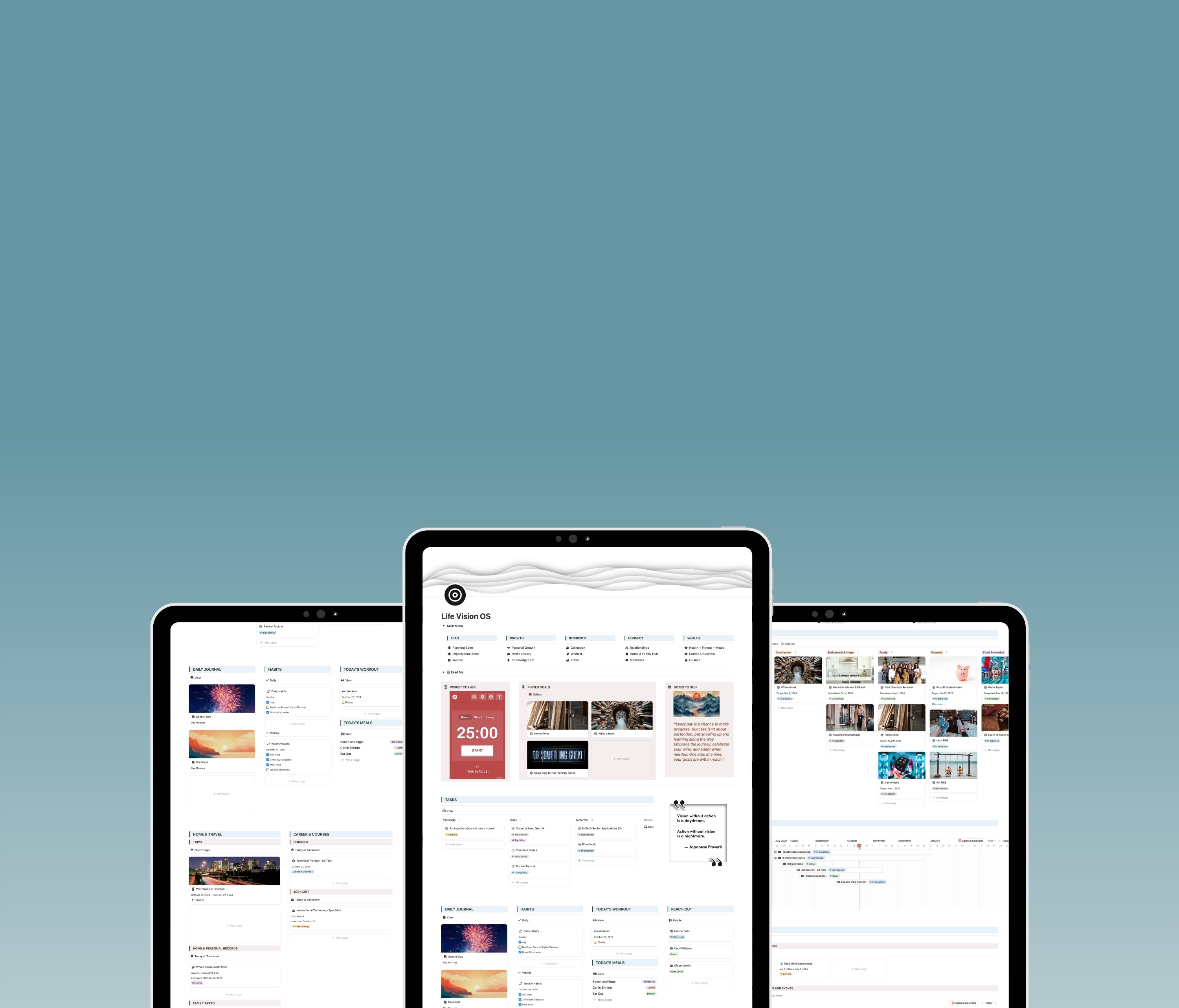 Notion is a productivity and collaboration tool that allows you to plan, write, and think exactly how you want. With Notion, you can easily capture thoughts, manage projects, and even run an entire company. Join the millions of people using Notion! Life Vision OS has taken Notion's advanced features to make it even more helpful for complete life management - no need to spend time building and then fine-tuning your workspace from scratch.